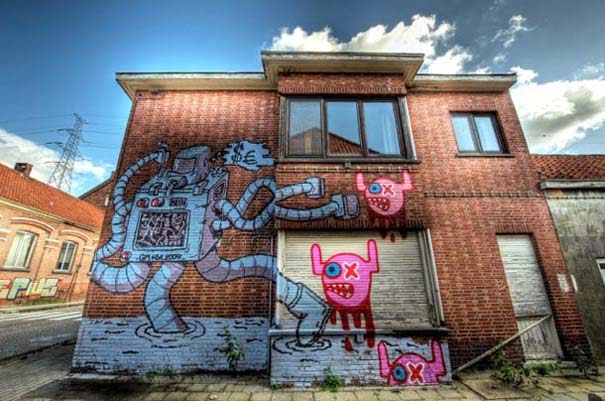Ολόκληρη η περιοχή έμοιαζε με ένα σουρεαλιστικό τοπίο, χωρίς ψυχή, χωρίς ήχους, χωρίς ζωή. Μέχρι που το ανακάλυψαν οι καλλιτέχνες του δρόμου και αποφάσισαν να το ζωντανέψουν μέσα από τα έργα τους στους τοίχους των σπιτιών. Ξαφνικά το χωριό απέκτησε χρώμα και εντυπωσιακές δημιουργίες κάλυψαν κάθε τοίχο, κάθε φράχτη, κάθε δομή! Το αποτέλεσμα; Δείτε και μόνοι σας στις εικόνες το απίθανο χωριό των γκράφιτι, όπως πλέον το ονομάζουν οι ντόπιοι!